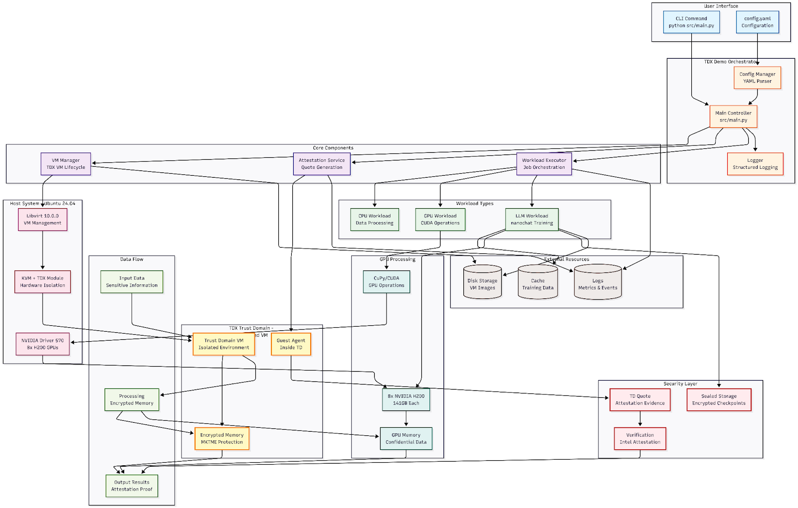 At Valdi we’re always excited to get our hands dirty. For most of 2025 the major OEMs (Supermicro, Dell, HPE) have been in various states of support for NVIDIA confidential computing. Once firmware stabilized around mid-year we started reviewing capabilities using Dell hardware and our TDX demo project. TDX-Demo implements a light-weight framework for initializing, attesting, executing and cleaning-up a workload from a CC GPU environment.